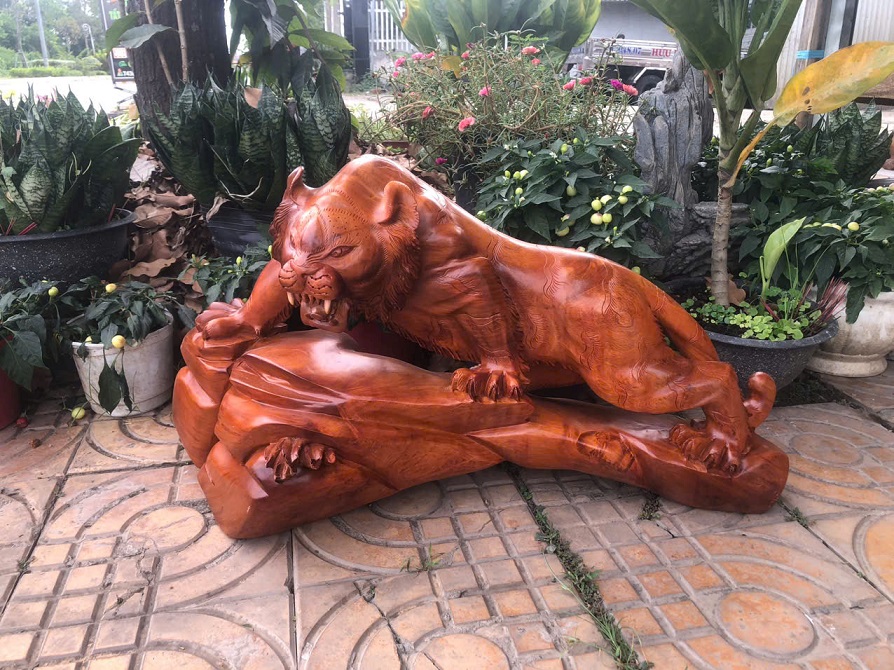 Đặc điểm: Tượng chạm thủ công, liền khối, thần thái dũng mãnh.uy quyền.